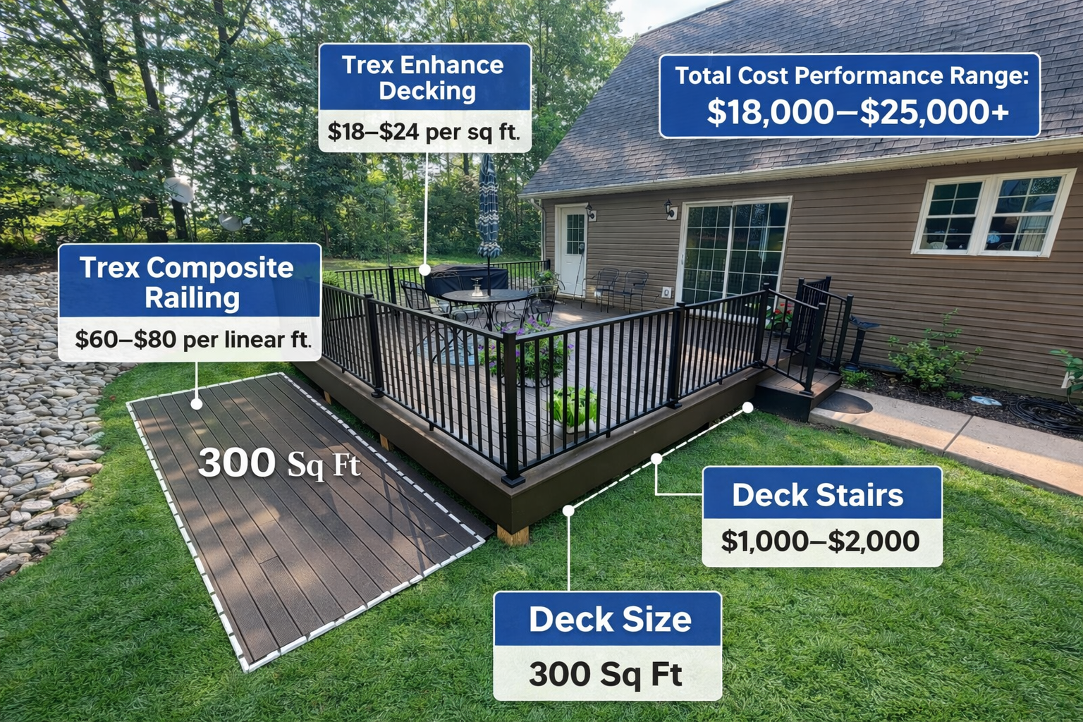 - Small Trex Deck (200–300 sq ft): $12,000 – $20,000
